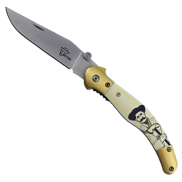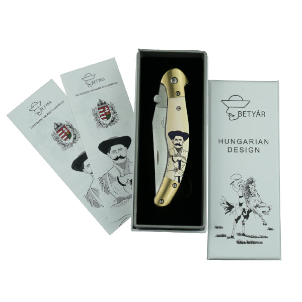 Fejesgörbe (Head Curve) is one of the most popular of Hungarian knives. The handle material is bone, with engraved designs which adds unique character to a knife.