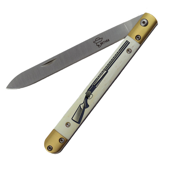 This is a sightly, lightweight folding knife with a narrow long blade. The knife is originally used by the higher class of society for culinary use, therefore it wasn't a convenient fit for a peasant. The "Szalonnázó" named after its function (the world "Szalonnázó" means prepare bacon for consumption), because you could easily cut off a huge slice with it from a larger piece of bacon.