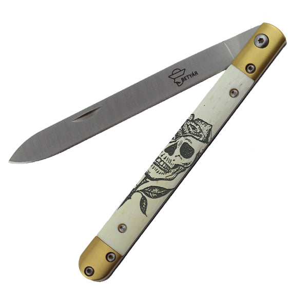 Szalonnázó is one of the most popular of Hungarian knives. The handle material is bone, with engraved designs which adds unique character to a knife.